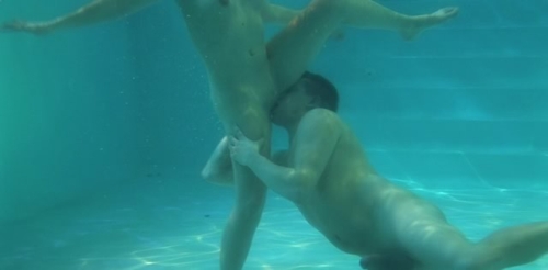 De tafel staat te zwiepen, haar borsten wippen springend op haar neer, en Missy kreunt nu alles bij elkaar. Hijgend en zwetend staat Bart nu Missy te neuken. Missy begint hard te kreunen en komt dan klaar. Haar kutspieren trekken samen en dat is te veel voor Bart. Ik kom” steunt hij. “Ja kom maar, spuit me maar vol, ”zucht Missy en ze kijkt hem geil aan. Grommend leegt Bart zijn zak in Missy. Uitgeput zakt hij over Missy heen en blijft zo even liggen. Dan komt hij omhoog en geeft ze een stevige tongzoen. “Wat ben jij een lekker geile meid, daar krijg je geen genoeg van” “Dat mag je dan straks bewijzen, ”zegt Missy. Ze laat zich van de tafel zakken en kruipt bij mij op schoot. Ze wipt even op en schuift zo mijn stijve bij haar naar binnen. “Heb je goed kunnen zien hoe Bart mij geneukt heeft?” vraagt ze met een quasi onschuldige blik. Dan begint ze stevig met haar kutspieren mijn stijve te bewerken en ja hoor, ik ga af als een kanon. “Dat vind ik leuk dat ik je zo goed ken, dan kan ik met je spelen”, zegt ze, terwijl ze van me afkruipt. “Ik kan wel een verfrissing gebruiken,”roept Missy en ze rent naar het zwembad. Bart en ik rennen achter haar aan en het zwembad wordt omgetoverd in een kolkende massa. Spetterend zwemmen Bart en ik achter Missy aan. Bart drijft haar naar een ondiepe hoek, waar ik stilletjes in ben gekropen. Ineens pak ik haar van achteren vast en neem haar in de reddershouding, dat wil zeggen, met de armen onder haar armen door, maar dan niet jezelf met je handen vasthouden, maar iedere hand heeft een borst van haar vast. Ik knijp in haar tepels en ze begint te kreunen. Bart gaat nu aan de andere kant staan en strekt haar benen omhoog. Dan stapt hij tussen haar benen en steekt gelijk zijn stijve in haar kut. Zo zit ze vast tussen ons, ik heb haar bij haar borsten vast en Bart heeft haar vastgepind. In het water beginnen we nu alle drie te bewegen en zo neukt Bart haar, terwijl ik haar borsten masseer. “Ja, lekker, neuk me, en knijp in mijn tepels, gebruik me dan, ja lekker,” roept Missy. Ik moet ze goed vasthouden om te voorkomen dat ze onder water verdwijnt. Omdat Bart pas was klaargekomen duurt deze ronde een stuk langer en komt Missy twee keer klaar. Maar dan komt ook Bart. Bart trekt zich langzaam terug uit Missy en ik trek haar op de rand van het zwembad. Ik kruip gelijk tussen haar benen. Bart zit al bij haar voorkant en begint aan een geweldige tongzoen, terwijl hij met zijn handen haar borsten vastpakt. Lekker neuk ik haar en hoor aan het gezucht onder Bart, dat ze weer een orgasme heeft. Heerlijk spuit ik me leeg in haar.